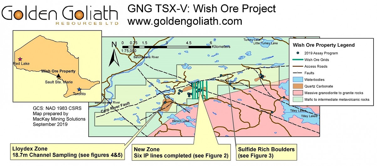 Company CEO Paul Sorbara says, “We already have multiple drill targets on the Wish Ore property and there is still a lot of potential to be evaluated. One of the Induced Polarization targets covers an area with Iron Formation and needs to be prospected, sampled and possibly stripped in that area. The trend of the nearby Carp River Fault needs to be thoroughly examined. Between the exciting results on our Kwai and SLF properties in the Red Lake area August 27 GNG Press Release and now Wish Ore near Sault Ste Marie, there will be a lot of drilling in our future.”