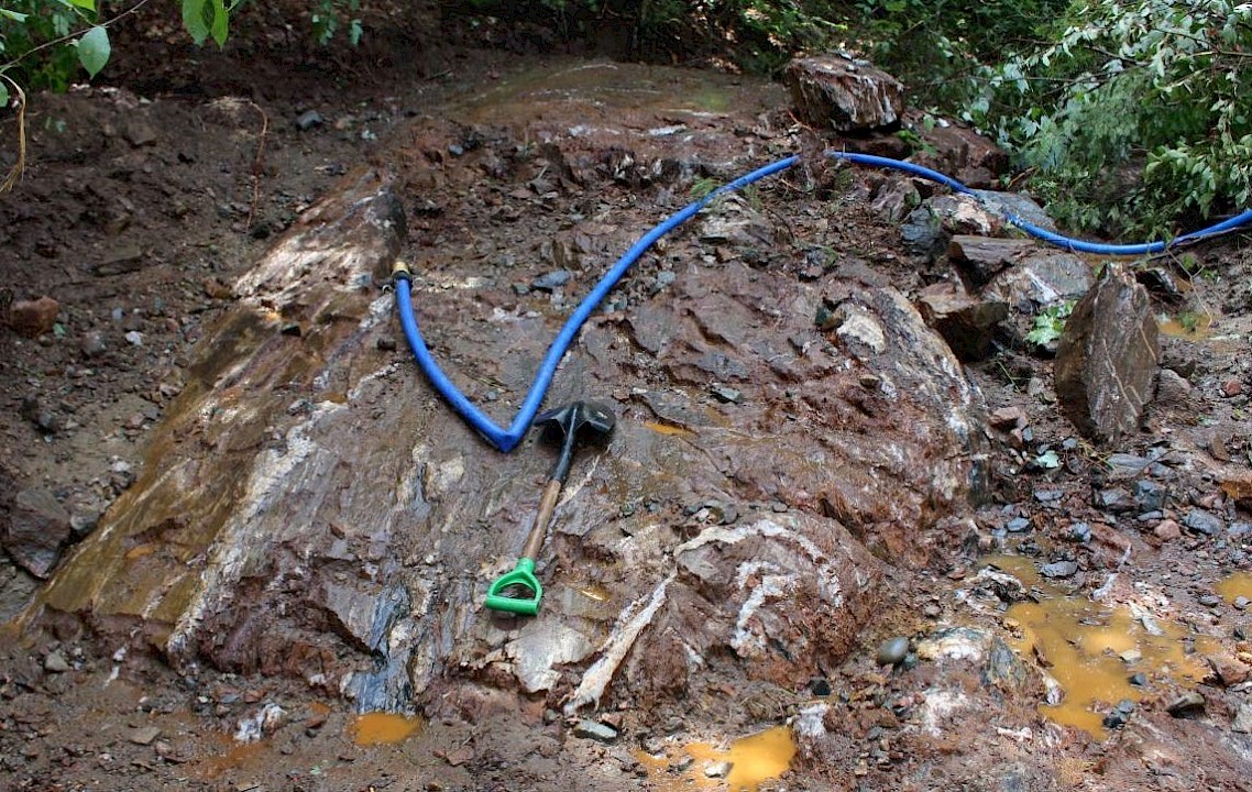 In addition, the historical trenches by Loydex Resources Inc. were located by prospecting. Historical gold values of up to 0.294 oz/ton (10.1 g/t) in grab samples have been reported here in quartz-carbonate, mineralized outcrops. One of the areas reported by Loydex was recently mechanically stripped by the Company and 18.7 meters of channel sampling was done. Analyses are pending.
